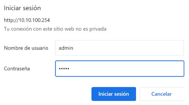 Abrimos el navegador de nuestro movil o Pc y accedemos con la siguiente IP: 10.10.100.254
