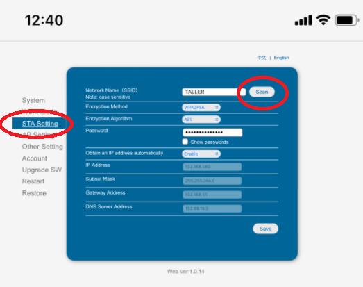 En STA SEETINGS seleccionamos SCAN para ver las redes disponibles:
