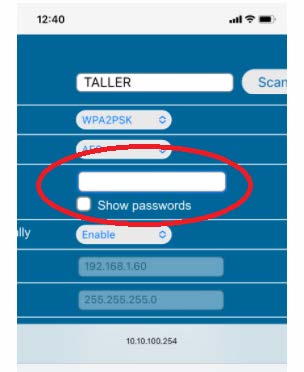 Seleccionar la red que queramos que se conecte el inversor y insertar contraseña:
