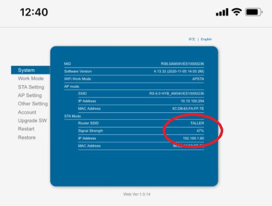 Volver a entrar por IP: 10.10.100.254 y verificar que el porcentaje de la señal es correcto y si el dispositivo